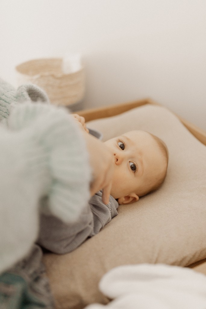 Séance à domicile avec des accessoires pour les bébés entre 3 et 12 mois.